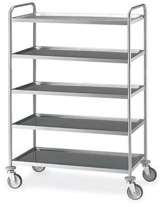 HOST Stainless Steel Trolley with Five Bolted Pressed Shelves (100x60 cm Shelf dim.)